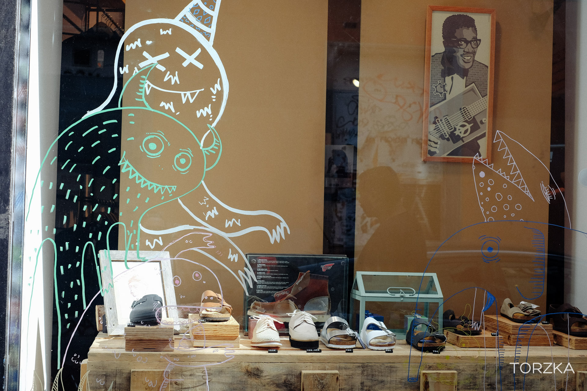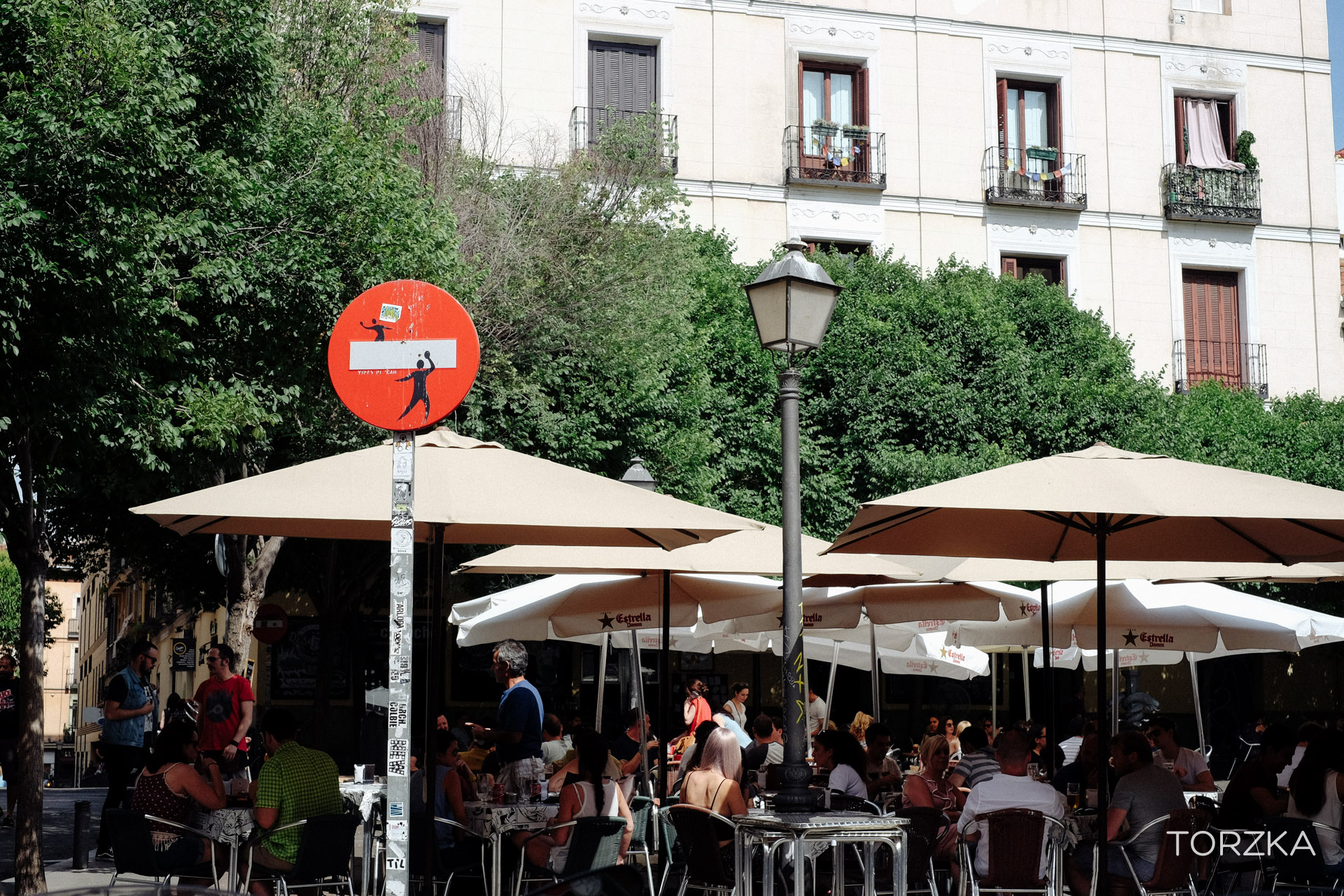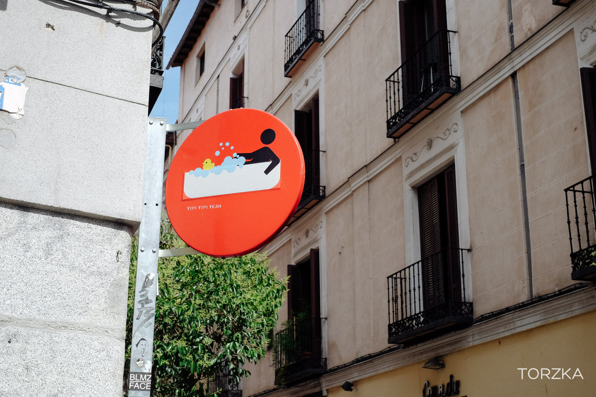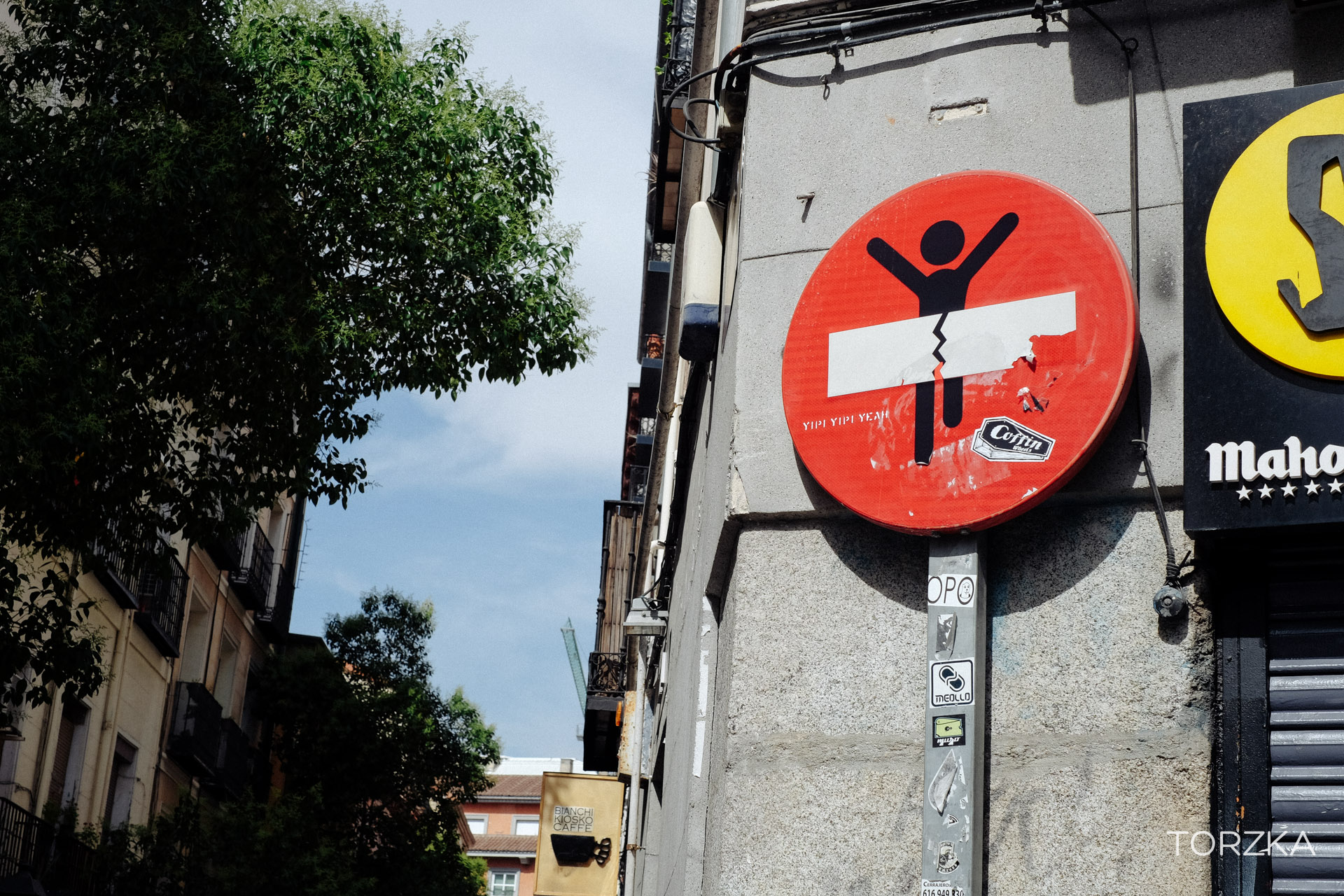Dans une grande ville comme Madrid il y a forcément du Street-art. Ici les détournements de panneaux de l’artiste Clet.